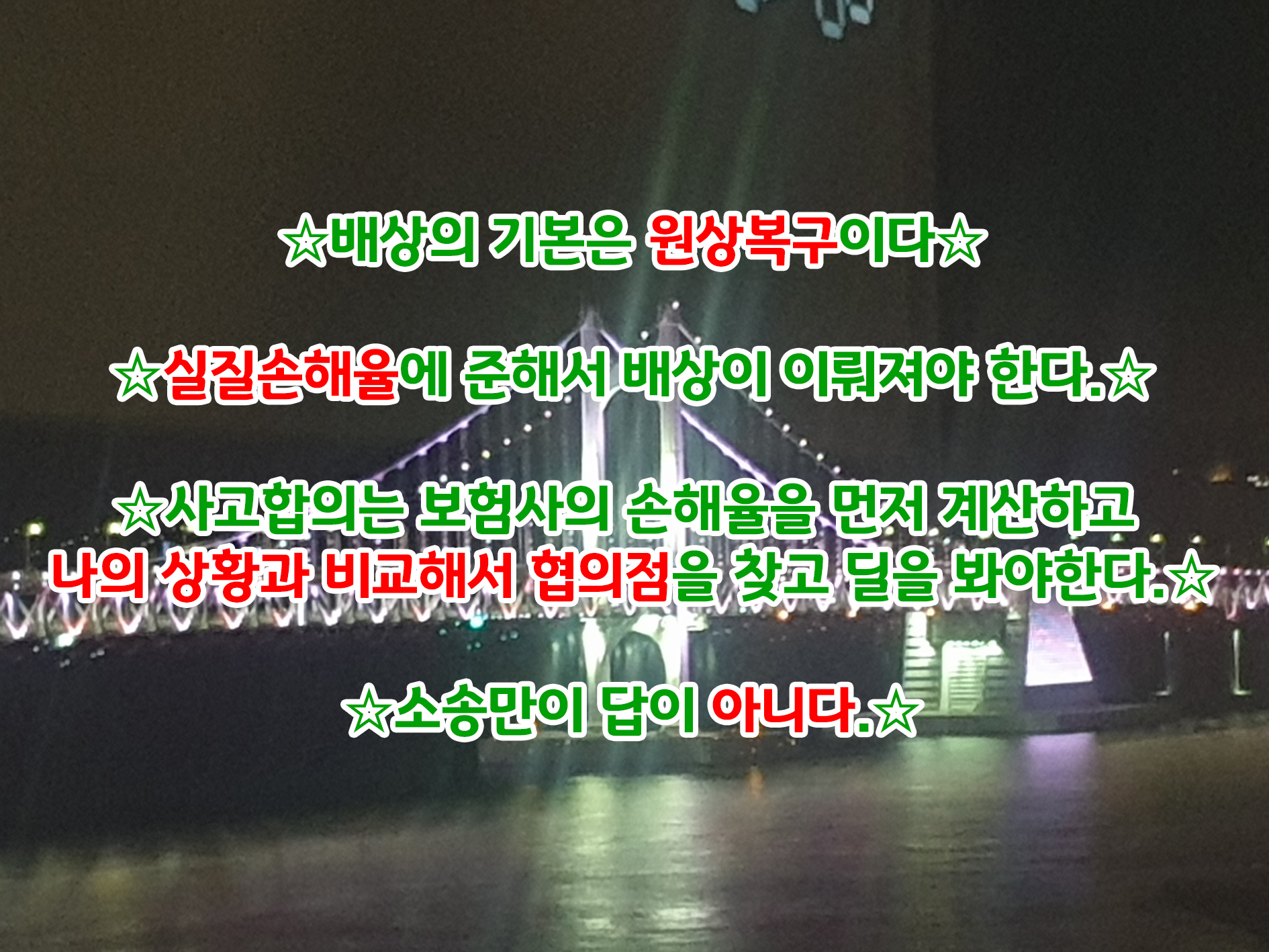 합의를 잘 진행하기 위해서는 나의 조건과 상대의 조건을 잘 조율해봐야 하는데, 이 조건들은 정말 다양하게 산재합니다. 단순히 가격적인 차이 일수도 있고, 나와 담당자가 처한 상황이 다를 수도 있고, 친분의 차이 등 다양한 요건이 손해율에 반영됩니다.